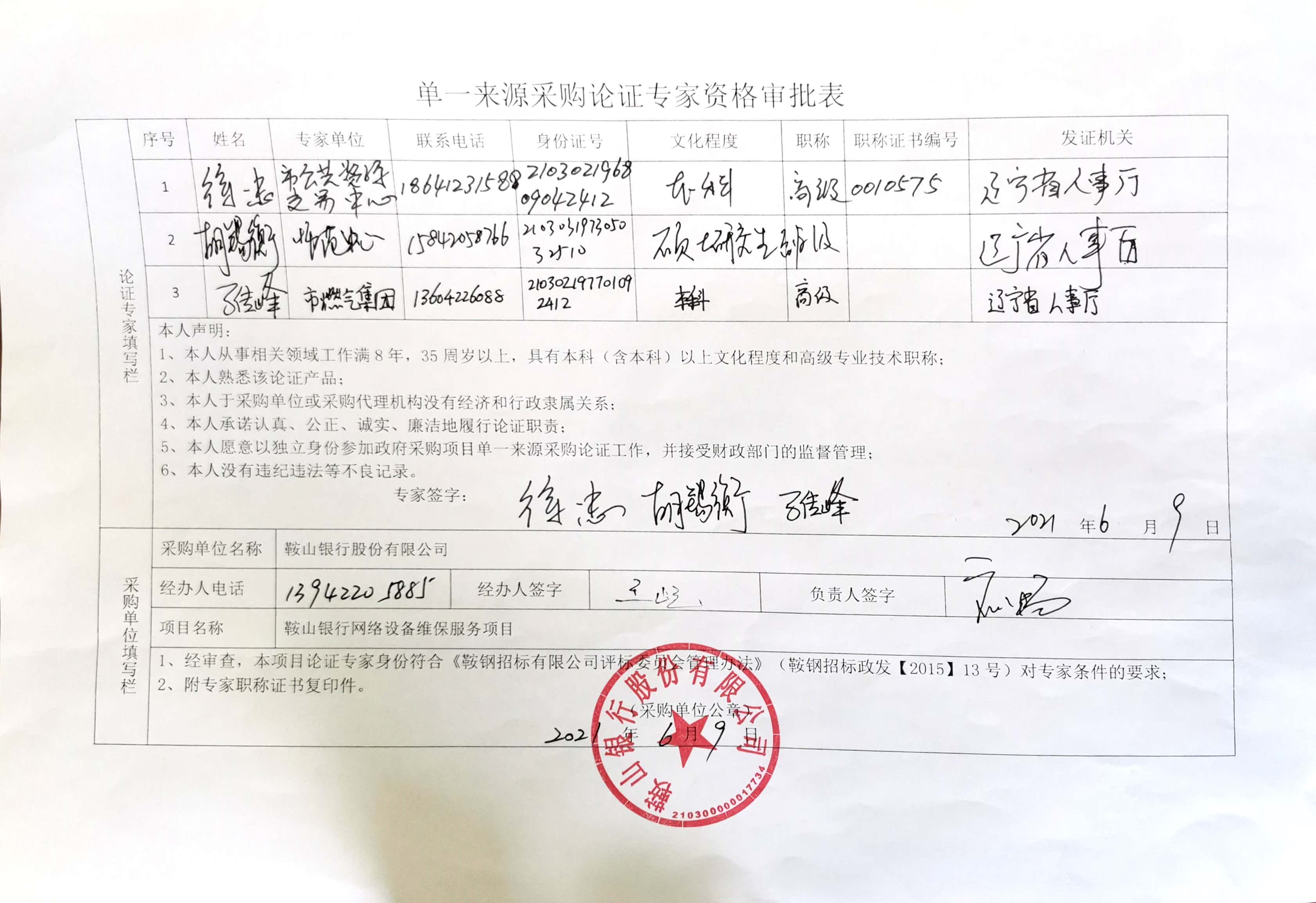 项目名称:鞍山银行网络设备维保服务项目