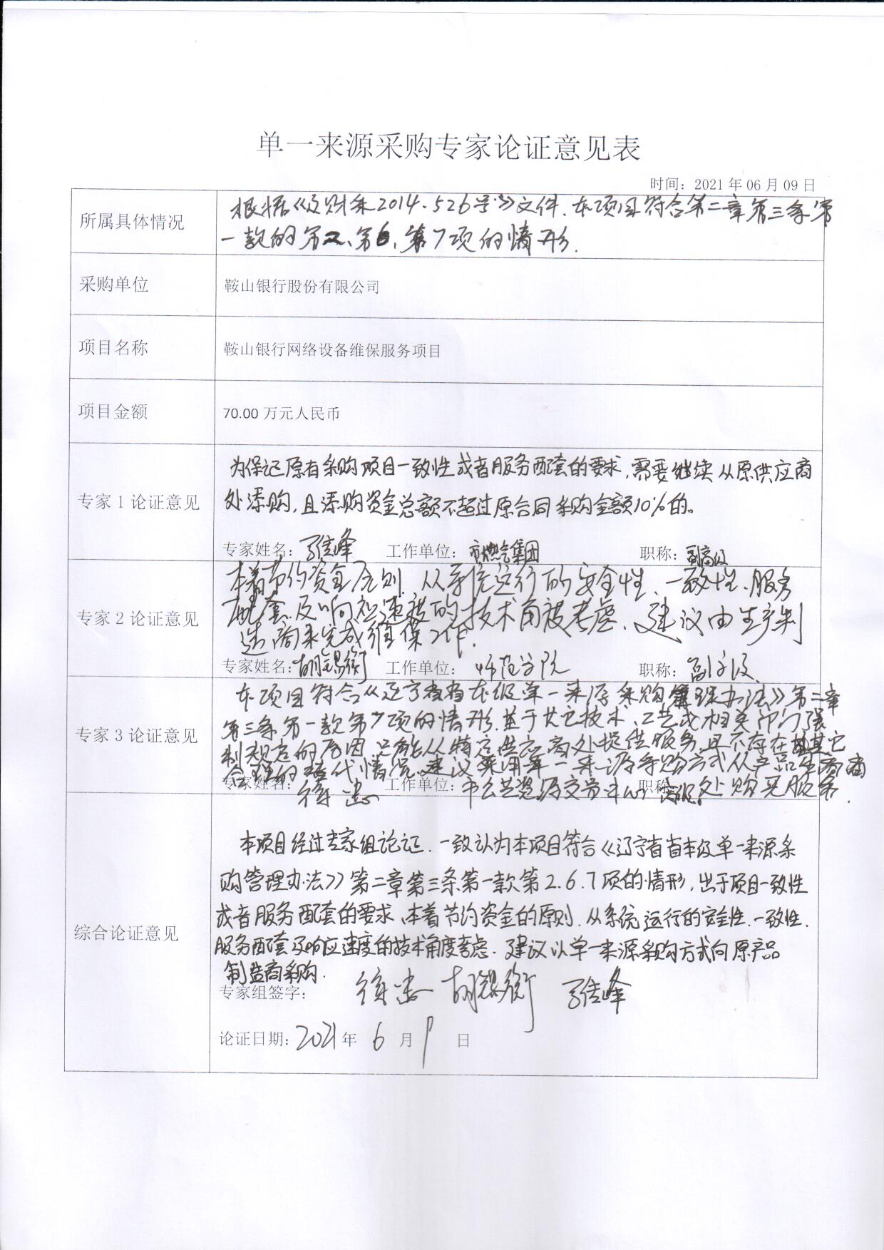 采用单一来源采购方式的原因及说明:出于项目一致性或者服务配套的要求,本着节约资金的原则,从系统运行的安全性、一致性、服务配套及响应速度的技术角度考虑。同时我行组织了相关技术专家进行论证,一致认为本项目符合《关于印发辽宁省省本级单一来源采购管理办法(试行)的通知》(辽财采〔2014〕526号)第二章第三条(一)款2、6、7项的规定,故我行申请采购方式为单一来源采购。