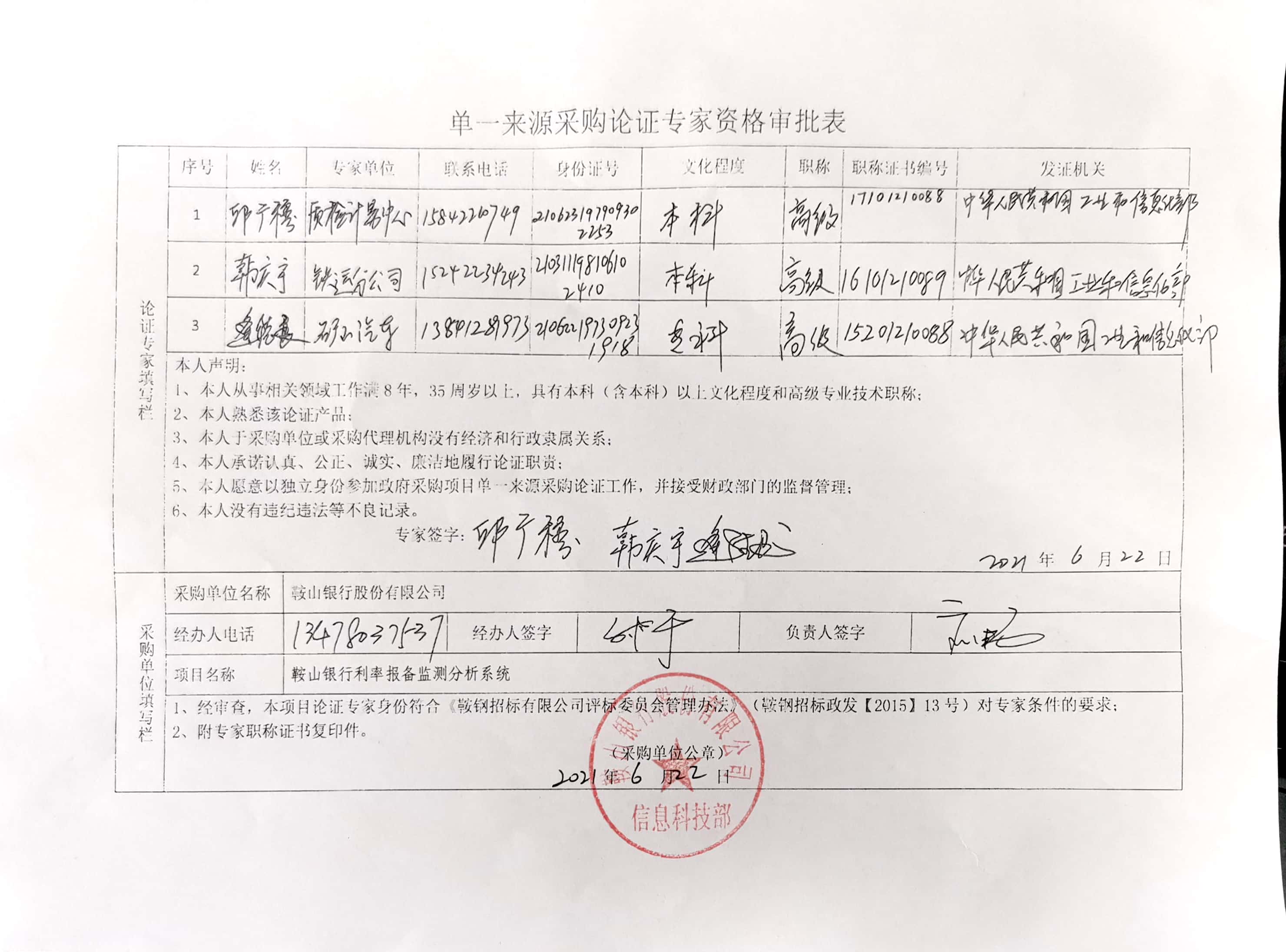 采用单一来源采购方式的原因及说明:出于项目一致性或者服务配套的要求,本着节约资金的原则,从系统运行的安全性、一致性、服务配套及响应速度的技术角度考虑。同时我行组织了相关技术专家进行论证,一致认为本项目符合《关于印发辽宁省省本级单一来源采购管理办法(试行)的通知》(辽财采〔2014〕526号)第二章第三条(一)款6项的规定,故我行申请采购方式为单一来源采购。